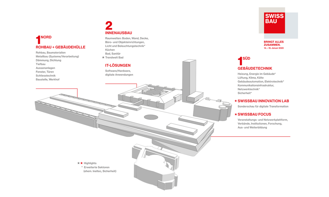 Die Swissbau findet alle zwei Jahre statt, zählt zu den grössten Baumessen in Europa und ist die führende Fachmesse der Bau- und Immobilienwirtschaft in der Schweiz. Während den fünf Messetagen treffen in Basel rund 1100 Aussteller auf über 100 000 Besucher. 80 Prozent der Besucher sind Fachbesucher. Sie erhalten die Gelegenheit, sich eine umfassende Marktübersicht zu verschaffen sowie eine Vielzahl neuer Produkte und Dienstleistungen kennen zu lernen. Der Dialog zwischen Ausstellern, Verbänden, Institutionen und Besuchern dient dem Wissensaustausch und der Vernetzung, so auch im Veranstaltungs- und Netzwerkformat Swissbau Focus mit rund 70 Veranstaltungen und der Sonderschau zur digitalen Transformation, Swissbau Innovation Lab.
