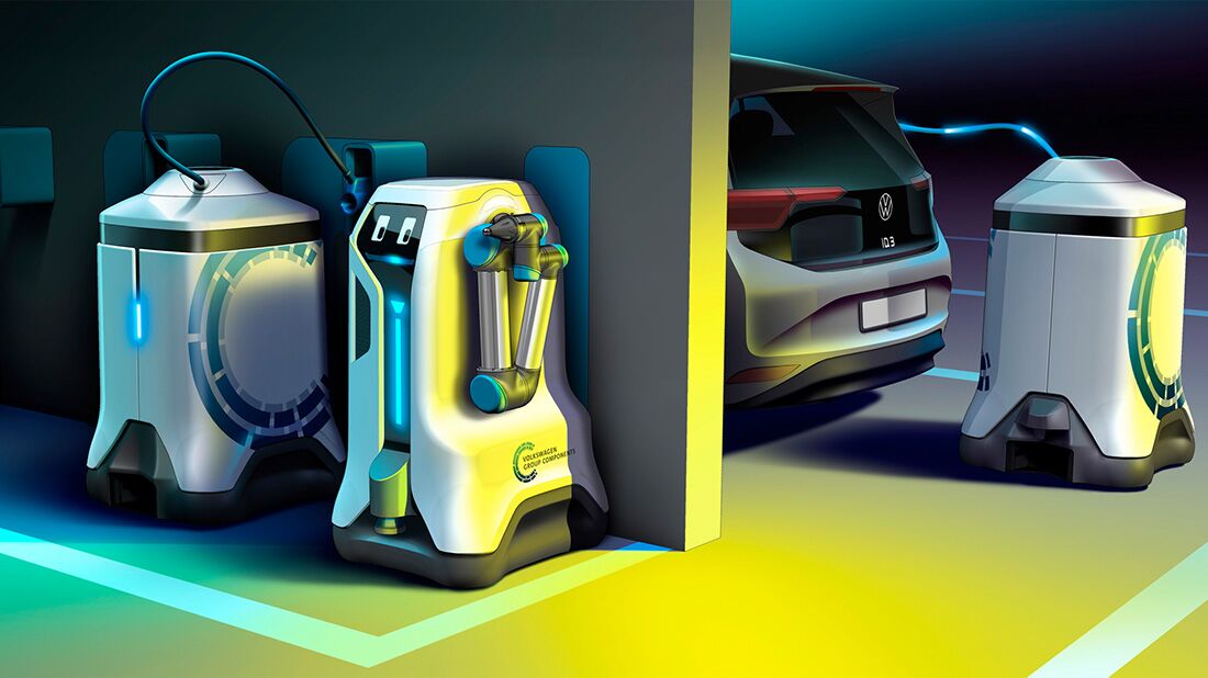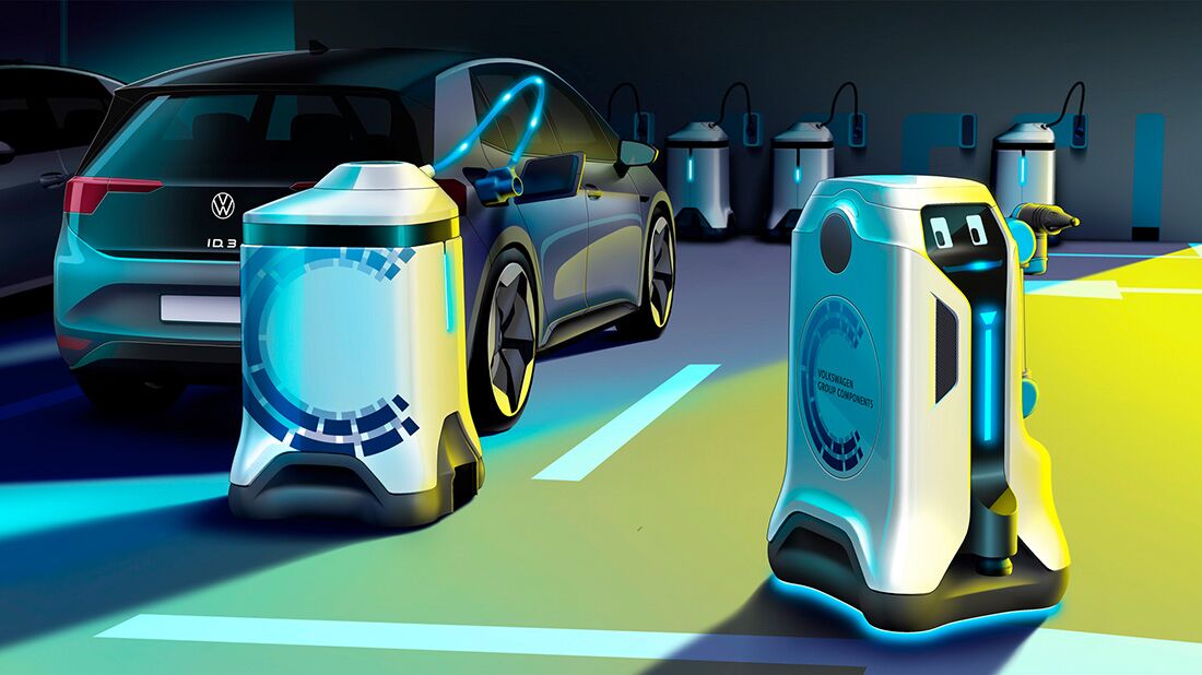 Der mobile Laderoboter von Volkswagen soll zukünftig das Laden von Elektroautos vereinfachen und die Suche nach Ladeinfrastruktur in Parkhäusern, Tiefgaragen und auf Parkplätzen beenden.
