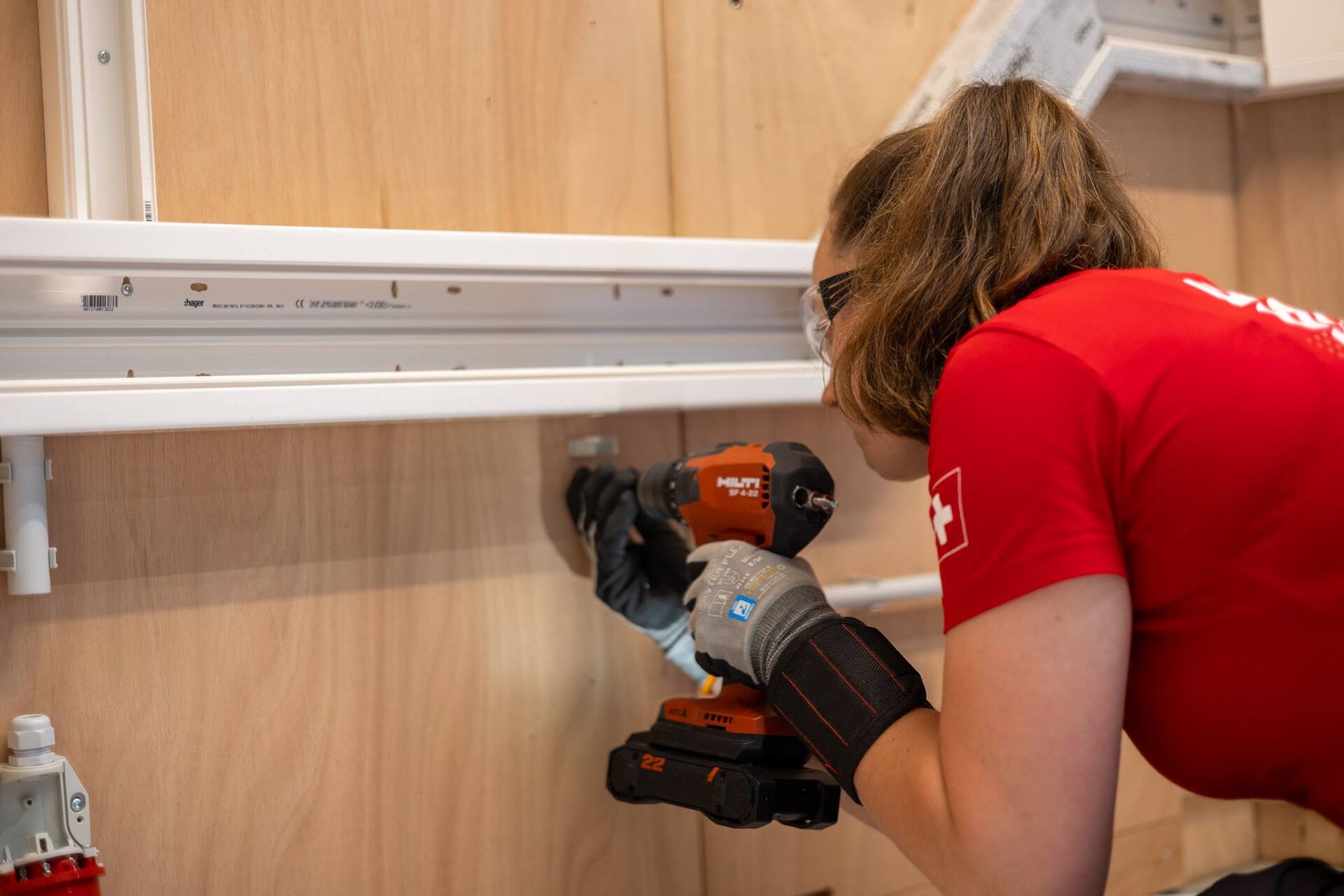Am Tag vor der Eröffnung der electro-tec in der Halle 3.1 der BernExpo: Stände werden aufgebaut, es ist laut, da und dort sind Nerven angespannt. Nur eine hat die Ruhe weg: Elektroinstallateurin Jana Gander, die an ihrem Stand mitten in der Halle für die EuroSkills trainiert.