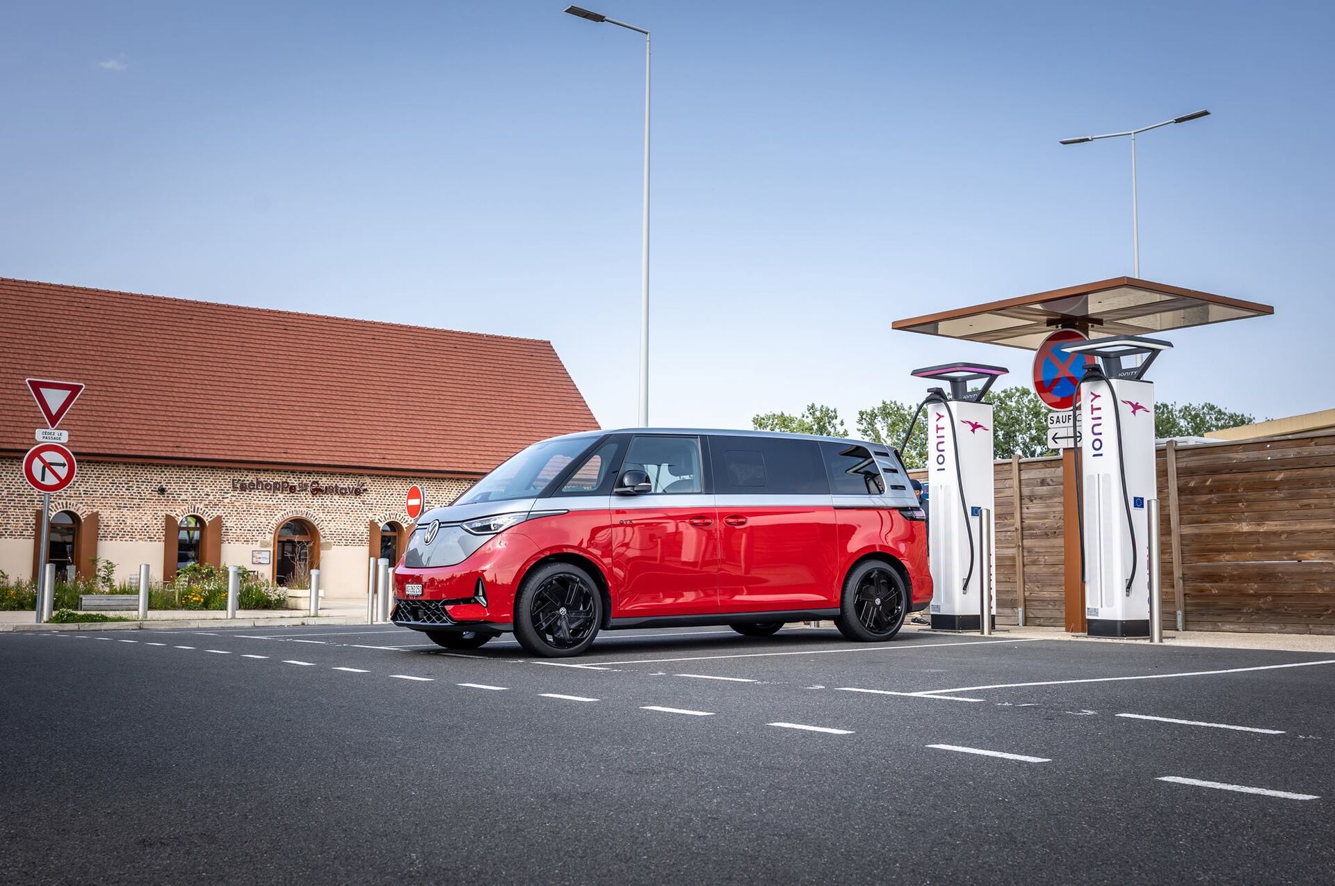 Wir sind immer noch auf dem Weg Richtung Atlantik. Einen letzten Zwischenhalt bauen wir spontan ein: Ionity Labenne, rund 20 Kilometer nördlich von Biarritz. Noch einmal aufladen – damit der Buzz gut vorbereitet ist für die Rückfahrt.