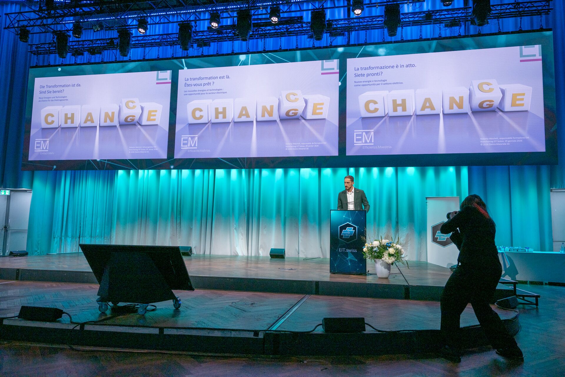 Roberto Weichelt von Elektromaterial AG legte in seinem Referat den Schwerpunkt auf die Dienstleistungen. EM begleitet Installateure nicht nur mit Schulungen, sondern auch in der Projektumsetzung. EM nennt dies Beratungskompetenz und bietet sie insbesondere in den Bereichen Licht, Fotovoltaik und eMobility an. Weichelt machte den Anwesenden auch Mut: «Installateure, welche die neuen Technologien verstehen, werden gewinnen.»